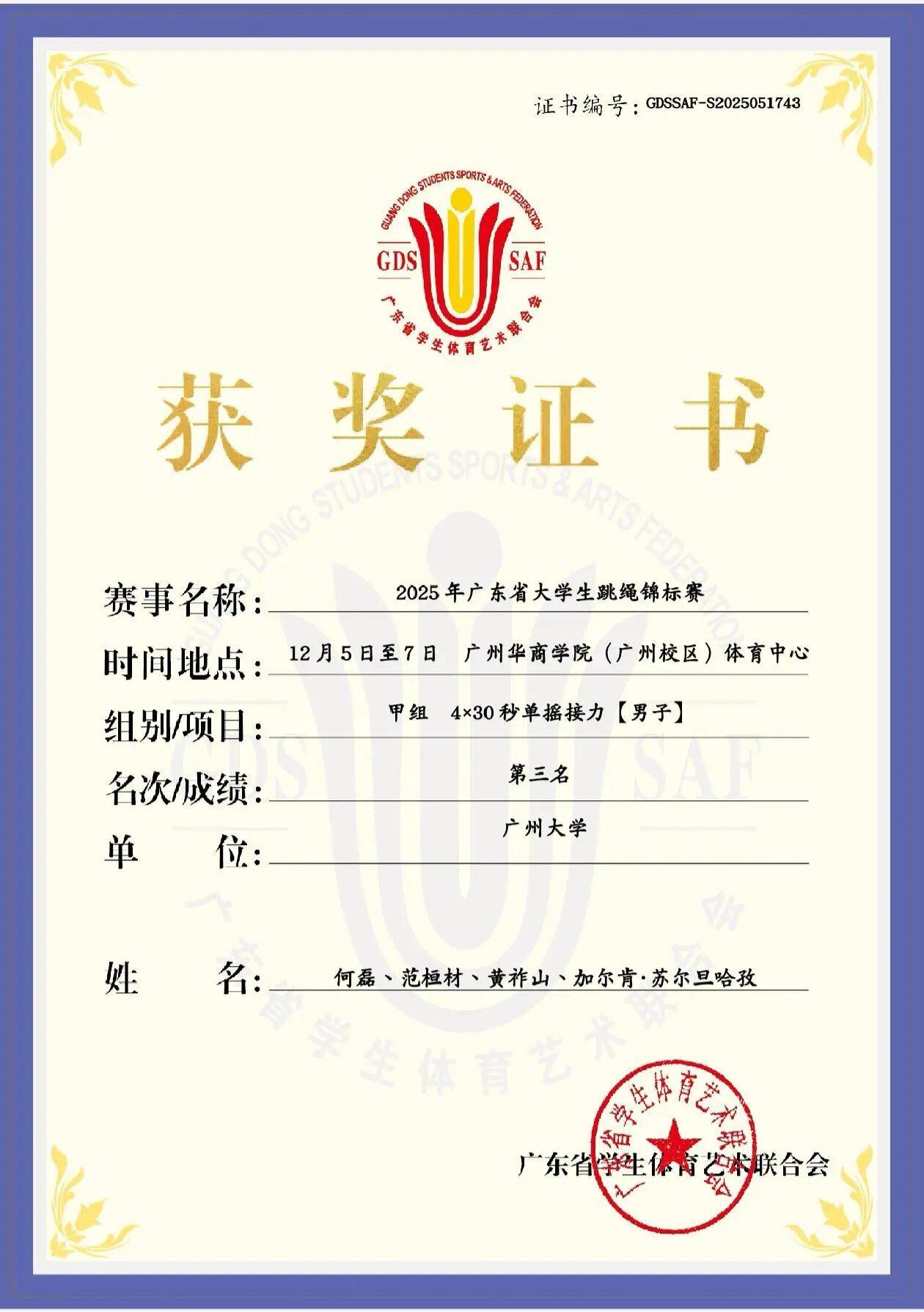 日前,2025年广东省大学生跳绳锦标赛在广州华商学院(广州校区)举行。经过激烈角逐,博彩公司